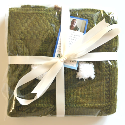 Rosa, our most seasoned knitter, makes all of our blankets with this soft and warm yarn that is 40% wool. It's perfectly knitted from a wool blend yarn that defines all of our "Snug as a Bug" blankets. see them all